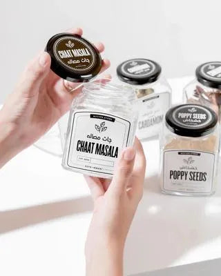 • Elevate your kitchen with our 7-piece masala rack set, featuring 6 glass jars and 1 wooden rack with a fancy design. Perfect for storing spices, herbs, and other kitchen essentials